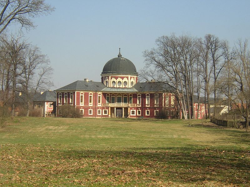 Romanesque castle rebuilt into Baroque chateau, former seat of Prague bishops and Lobkowicz family.